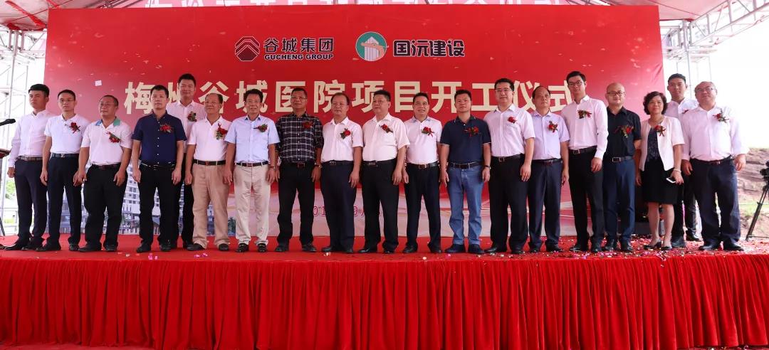 2019年9月3日,梅州谷城醫(yī)院項目在梅州市五華縣水寨鎮(zhèn)120省道與工業(yè)大道交匯處項目現(xiàn)場內(nèi)隆重舉行開工儀式。五華縣委常委劉敬東、政府辦副主任溫偉雄、衛(wèi)生健康局局長劉旭倫等各政府單位代表見證了重要的歷史時刻,谷城集團董事長賴友谷、總裁肖大志、副總裁賴志興、副總裁賴志旺、副總裁賴志長、財務(wù)總監(jiān)陳春靈、梅州谷城醫(yī)院院長李剛、建設(shè)項目總經(jīng)理陳立寶;EPC承包施工單位廣東國沅建設(shè)工程有限公司董事長宋國光、總經(jīng)理宋明瑞、副總經(jīng)理賴海輝、設(shè)計單位中國建筑標準設(shè)計研究院總建筑師張建斌,及特邀嘉賓東升實業(yè)集團董事長賴松谷、廣超實業(yè)董事長賴超谷、廣州鴻發(fā)礦業(yè)投資董事長賴來谷、廣美地產(chǎn)董事長賴滿谷先生等近200人出席參加此次開工儀式。
