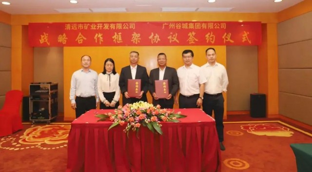 廣州谷城集團(tuán)有限公司與清遠(yuǎn)市礦業(yè)開發(fā)有限公司舉行戰(zhàn)略合作框架協(xié)議簽約儀式,攜手開啟礦山生態(tài)綠色發(fā)展新模式。