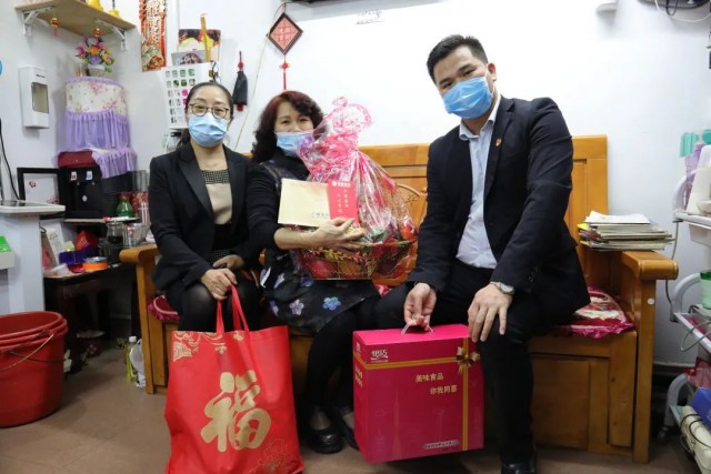慰問團走訪到困難家庭中,細細詢問了他們的生活情況,叮囑他們要注意身體,疫情期間要做好自我防護措施,并送上了慰問金、果籃、大米、油、大禮包等生活物資。